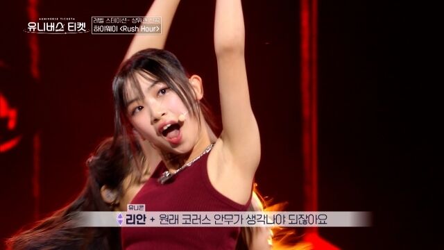 上レベルに所属する日本人練習生のニジ(13)は、新曲「Rush Hour」を披露。新曲とは思えない仕上がりを見せた圧巻のステージに拍手が送られ、ユニコンのキム・セジョンは「さすが上レベル」と称賛した。少女時代・ヒョヨンも「見ながら楽しいと感じたステージは初めてでした。1つのグループのようでした、かっこよかったです」とコメント。ニジは、ユニコン勢から高評価を獲得し、キム・セジョンは「ニジさんは、パートが2つなのにそこですべてを掌握していました」と伝え、リアンは「普通はコーラスの振り付けが記憶に残るのですが、ニジさんのパートの部分が記憶に残っています」と評価した。