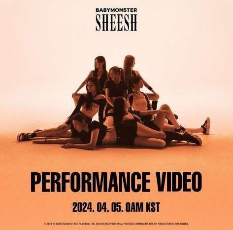 投稿では、BABYMONSTERの新曲「SHEESH」のパフォーマンスビデオのティザー映像が、2024年4月5日(現地時間)に公開されることを告知。