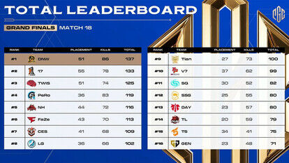 12月1日から3日まで計18のマッチにわたる激しいグランドファイナルの結果、韓国のDANAWA E-SPORTSが計137ポイントを獲得し、2023年PUBG Esports全世界最強チームの栄誉を獲得した。